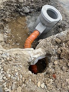 - Napojení kanalizace: Nyní již následuje připojení potrubí na veřejnou kanalizaci a také k rozvodům v nemovitosti. Důležitou součástí je samozřejmě tlaková zkouška kanalizace.